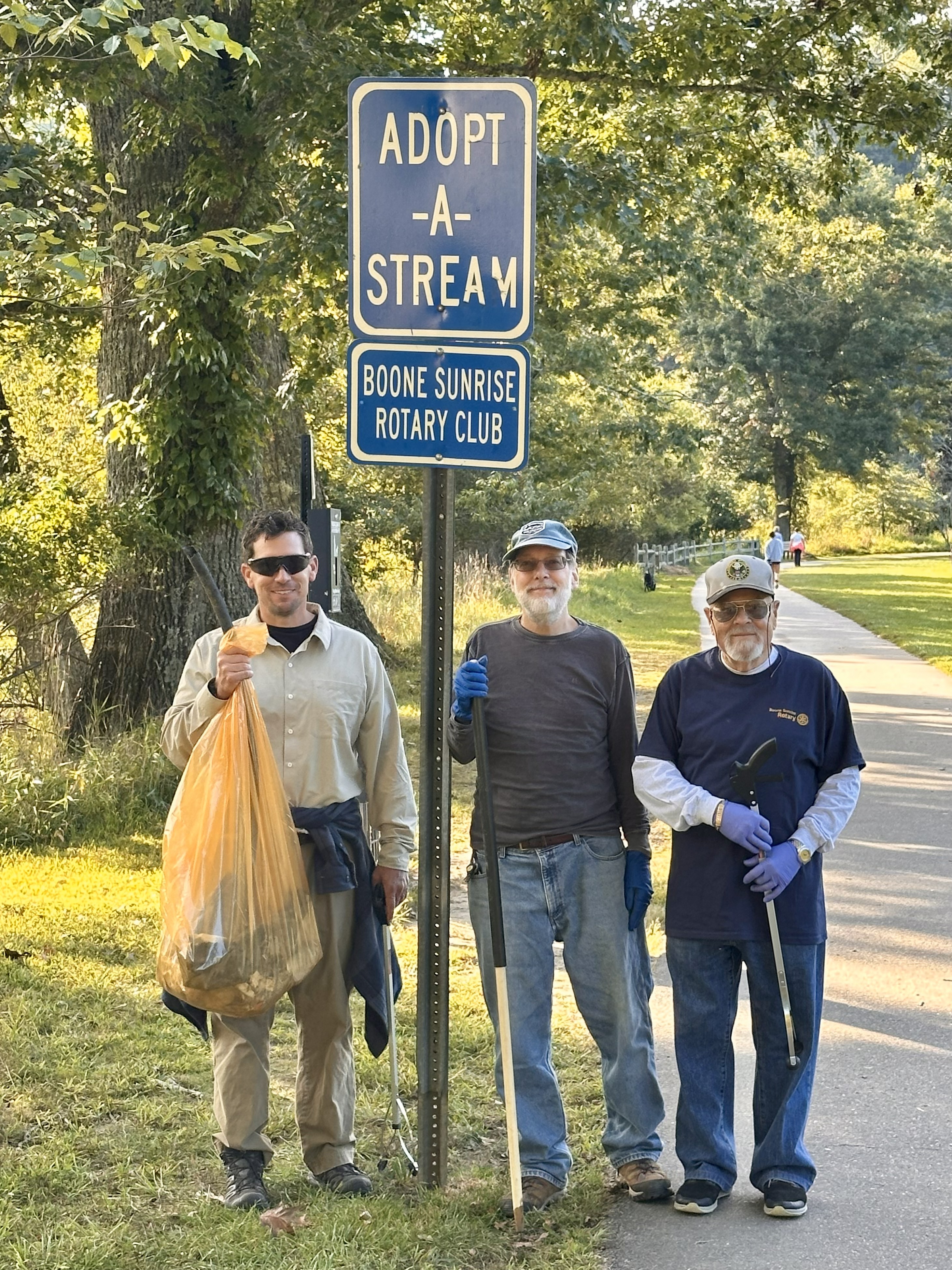 Twice annually, members of the Boone Sunrise Rotary Club participate in the Town of Boone’s “River Clean-Up,” by taking responsibility for removing trash and debris along a stretch of the South Fork of the New River running through the Greenway.